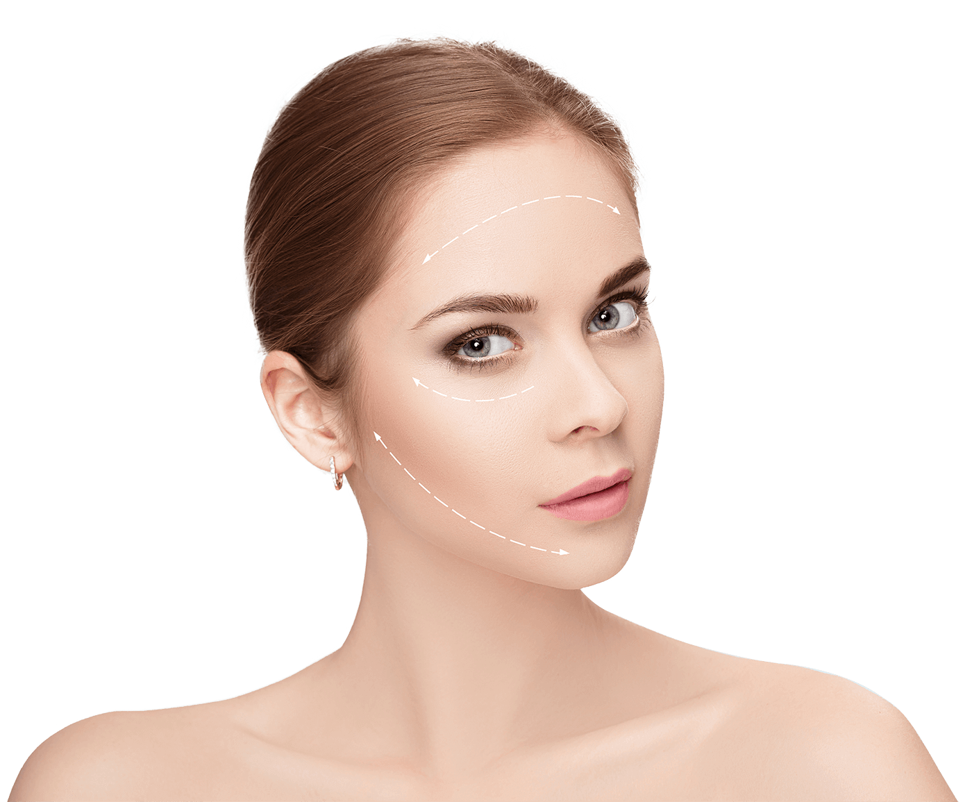 Гравитационное опущение в зоне щек, век, уголков губ и бровей.